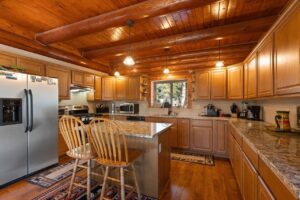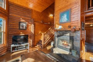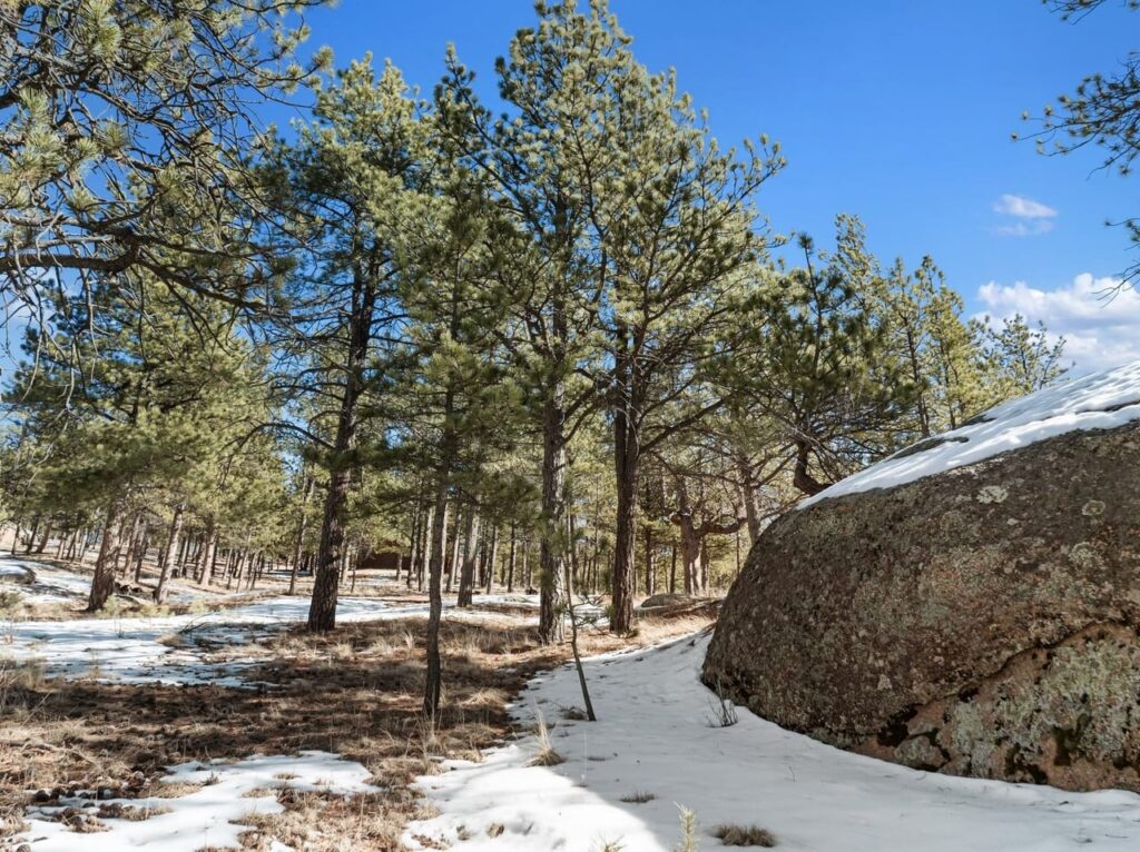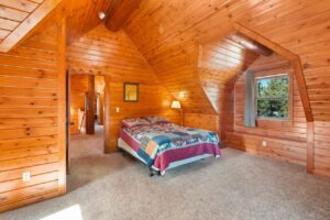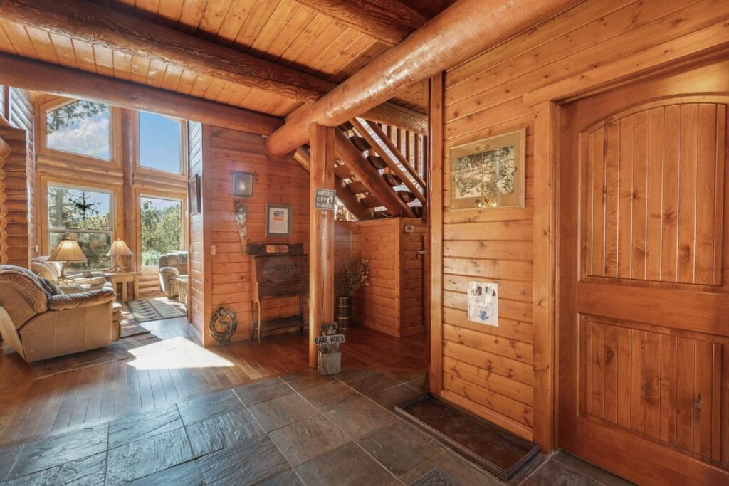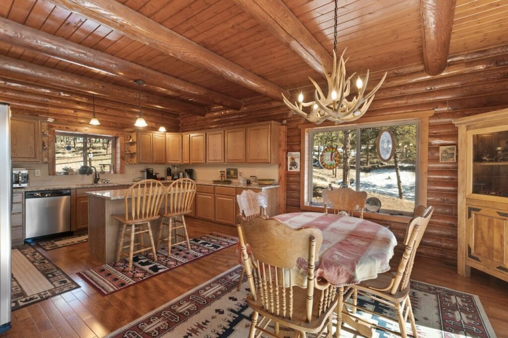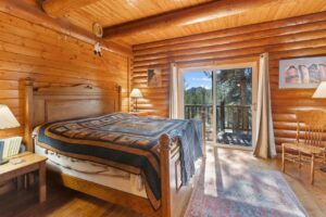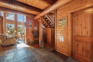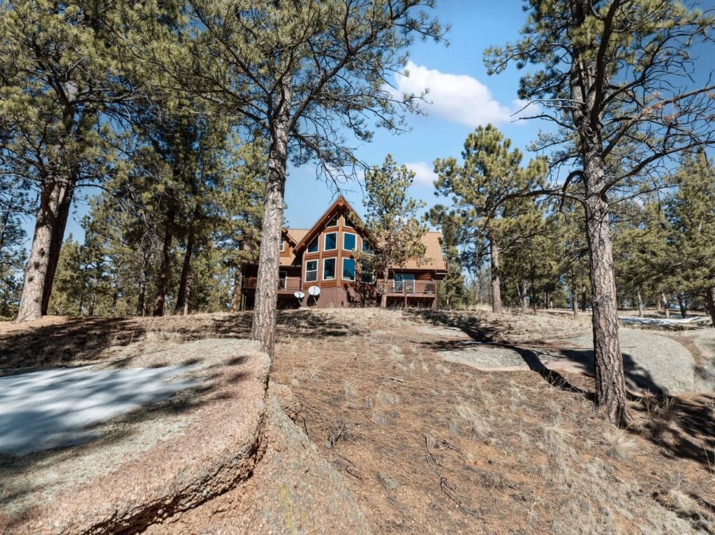 Beautiful log home on 5 plus acres. Hidden and nestled in the towering Ponderosa pines, quaking aspen and huge moss rock boulders throughout. Three bedroom, 2.5 baths. High quality construction, vaulted ceilings, fireplace, hardwood floors and prow front. Well priced at $825,000.